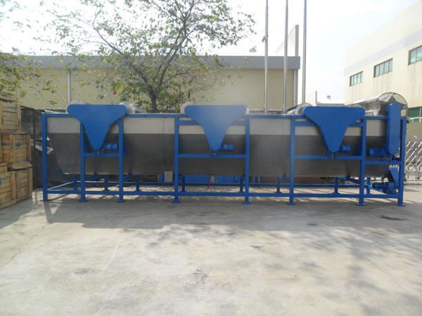 Función principal: deshidratación mecánica tras el lavado de las películas delgadas. Esta unidad de la línea de reciclaje de película de PE/PP emplea un alto par de torsión para estrujar los materiales con fuerza permitiendo que el agua salga por la malla de la criba. A continuación, la trituradora de la línea de reciclado de film plástico acabará de triturar los trozos de película.